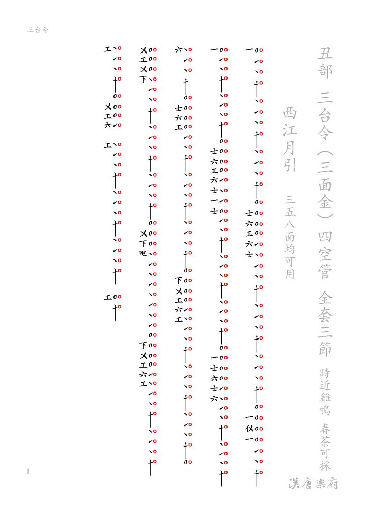 俗稱「三面金」,與「五湖遊」、「八展舞」共稱「三、五、八遍」,同為清調曲(四空管),共用同一序曲(慢頭)「西江月引」及第一樂章「金錢經」。全曲以三撩拍進行雍容大度正氣澟然第三樂章之「正雙清」與「八展舞」之第七樂章「折雙清」有同曲異工之妙處頗有研究價值。