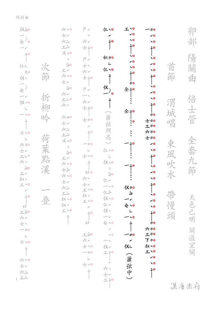 陽關曲 yenny2016-02-21T08:03:07+00:00 Project Description 0 二月 21, 2016 聲音, 譜, 音樂 http://nankuan.asdc.sinica.edu.tw/wp-content/uploads/2016/02/043.mp3 工尺譜 音樂名稱 陽關曲 數位檔案格式 MP3 原件類型 CD 播放時間長度 00:02:34 指/譜/曲 譜 管門 倍士管 曲牌 錄音者 洞簫\吳世安 拍板\王秀怡 琵琶\陳美娥 三絃\陳倫頡 二絃\王心心 著作者 漢唐樂府 摘要描述 “本樂曲除了首節起慢頭之外,全曲均由疊拍組成,具有瑟調特有的婉轉韻致。尤其第八樂章的「三疊尾」,旋律輕俏流麗,常用於戲劇舞蹈或樂曲煞聲。 ” 完整演奏時間 00:17:36 演奏地點 台北 數位化執行單位 中央研究院數位文化中心 原件典藏者 漢唐樂府 Share: FacebookTwitterLinkedInGoogle +Email